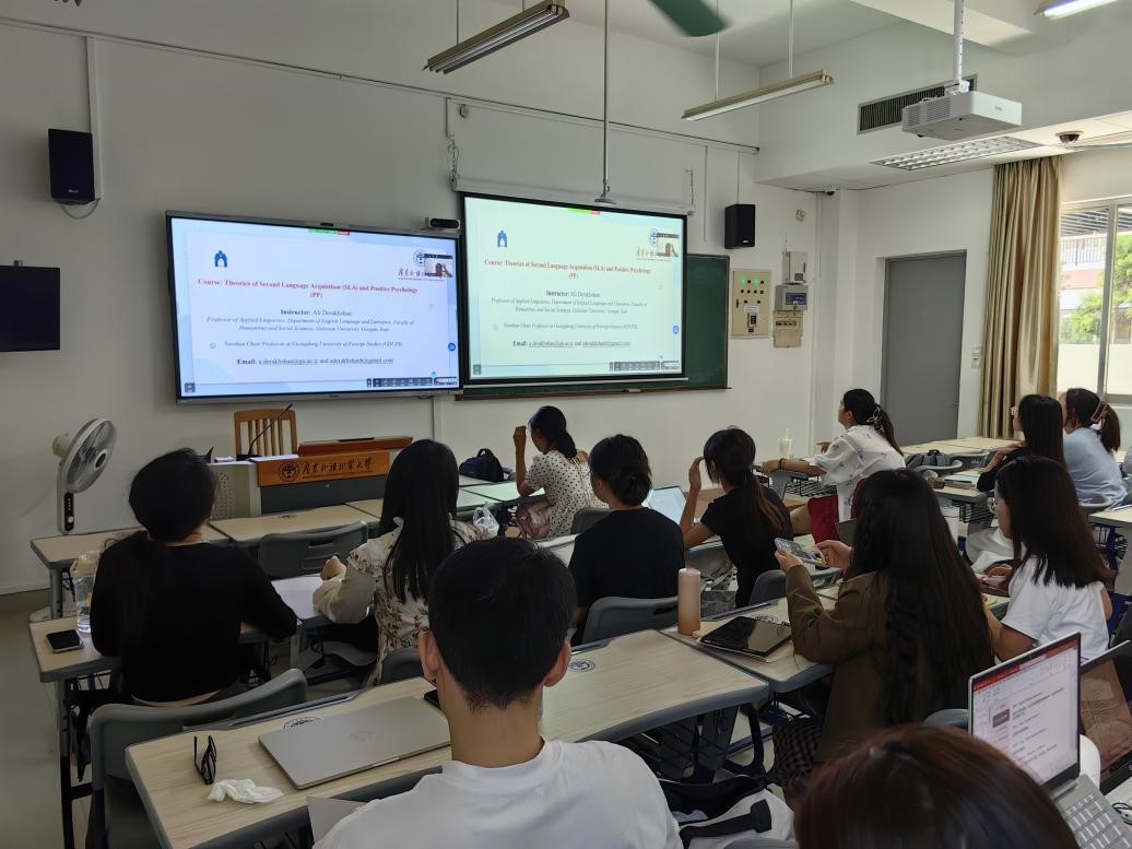 为进一步提升买球App软件手机在线下载科研水平,推动学院研究生教育国际化,10月25日14时,广东外语外贸大学云山学者Ali教授应邀为买球官网研究生带来题为“Theories of Second Language Acquisition (SLA) and Positive Psychology”的学术讲座。本讲座以线上Zoom会议室和线下集中收看形式同步进行,买球App软件手机在线下载王亚冰老师主持,研究生辅导员吴世傲线下组织安排,2024级英语教育、2024级学科教学(英语)专业学生共同参与。