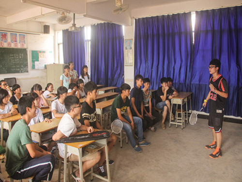 7月15日下午3点半,清远望埠初级中学“第二课堂”正式开课。清远望埠“心之望”服务队队长邓选向我们介绍道,第二课堂”是一类兴趣性课程,他以培养学生课外兴趣、拓展学生课外视野、丰富学生课余生活、调动学生学习兴趣为目的,希望起到让学生快乐学习的作用。在“第二课堂”中,来自五个不同班级的所有同学都可以根据自己的兴趣自由选择自己喜欢的课程,并且在课上也会由具备这些才能的老师进行分别教学。在现阶段,望埠初级中学“第二课堂”开设有象棋、羽毛球、话剧表演、手工折纸、快乐体育这五类课程,日后也会根据学生们的兴趣和特点开设更多的“第二课堂”课程。