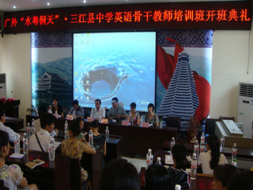 7月24日早,广外大“水粤侗天”之三江中学英语骨干教师培训班开学典礼在三江中学的学术报告厅正式开幕。本次培训活动,旨在提升三江骨干教师的英语教学水平,进而更好地进行日常英语教学。出席开幕式的有县教育局副局长龙怀益,三江中学校长李吉祥,三江中学副校长石少明,广东外语外贸大学买球App软件手机在线下载教师的苏春和周洁,以及参与培训的教师和广外大的助教们。杨春琼主持了本次典礼。