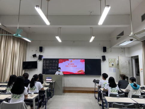 何紫婷介绍了党的二十大的主题和党的二十大报告的主要内容,全体团学骨干集中观看了习近平总书记在党的二十大开幕会上的讲话视频。